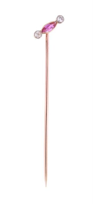 A RUBY AND DIAMOND STICKPIN