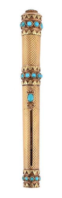 A GOLD AND TURQUOISE SET PROPELLING PENCIL