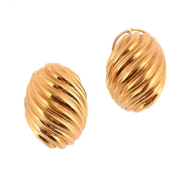 The oval bombé earrings with reeded detail, stud fittings, stamped with Italian control marks and London 1997 import marks