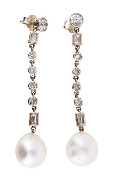 A PAIR OF DIAMOND, PASTE AND CULTURED PEARL DROP EARRINGS
