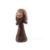 The conical neck supporting opposite faces with pointed chins and enlarged eyes, fibre plait around the neck, brown patina with kaolin