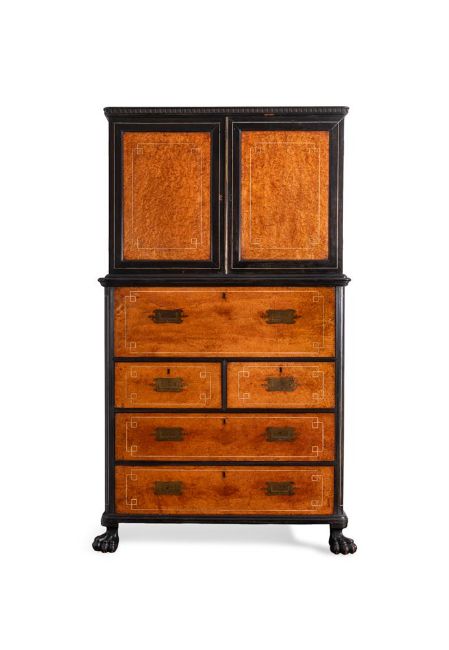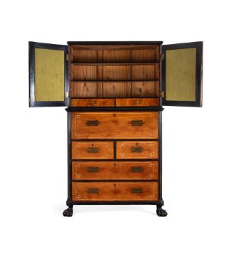 A CAMPHOR WOOD, AMBOYNA AND EBONY CAMPAIGN SECRETAIRE