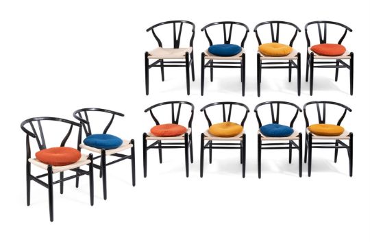 A SET OF TEN 'Y' OR 'WISHBONE' STYLE CHAIRS