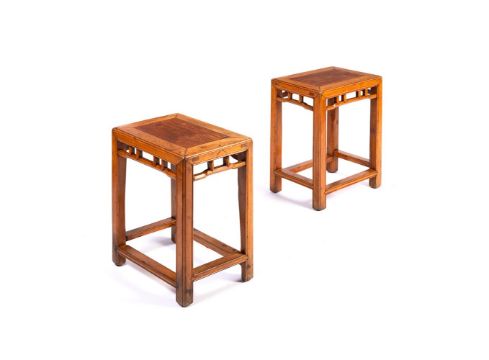A PAIR OF FRUITWOOD AND PADOUK TABLES