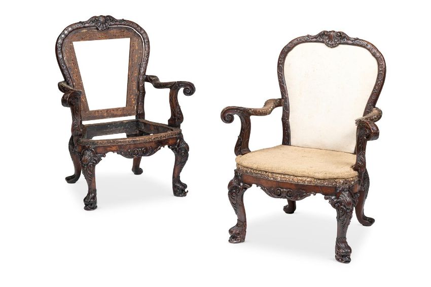 A PAIR OF CARVED WALNUT ARMCHAIRS