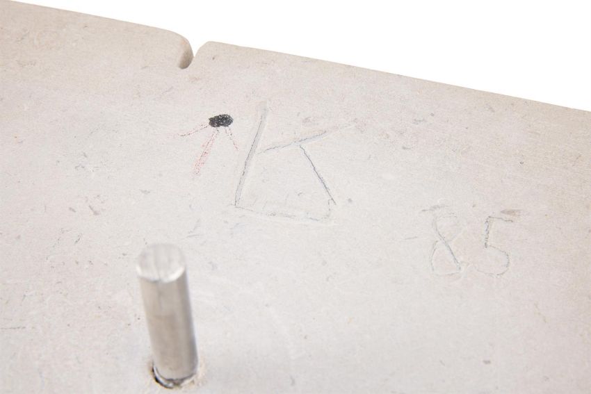The sculpture has a repaired corner to the lower section of the work, this is the right hand corner of the face with two incised lines. There is a further very small repaired chip to the base of the lower section (visible in the catalogue illustration as a small white mark). There is some slight overall surface dirt, especially to the edges. Otherwise the work appears to be in good overall condition.