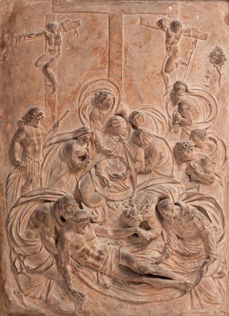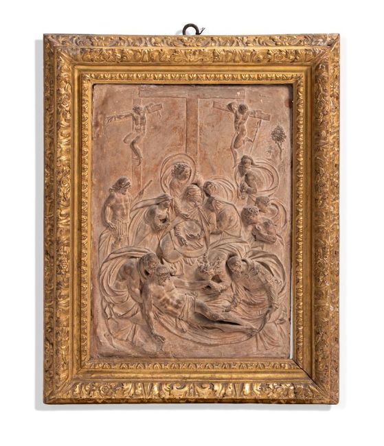 AFTER A MODEL BY GUGLIELMO DELLA PORTA (CIRCA 1500 1577) A TERRACOTTA RELIEF WITH THE DESCENT FROM THE CROSS