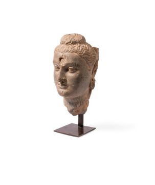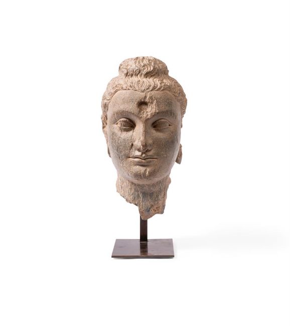 A GANDHARAN GREY SCHIST HEAD OF BUDDHA