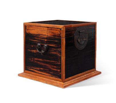A PAIR OF CHINESE BAMBOO AND BLACK BAMBOO LIDDED BOXES