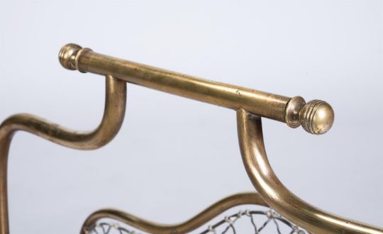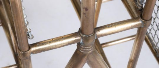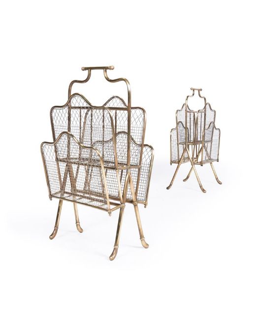 A PAIR OF VICTORIAN POLISHED BRASS AND WIRE MESH STANDS