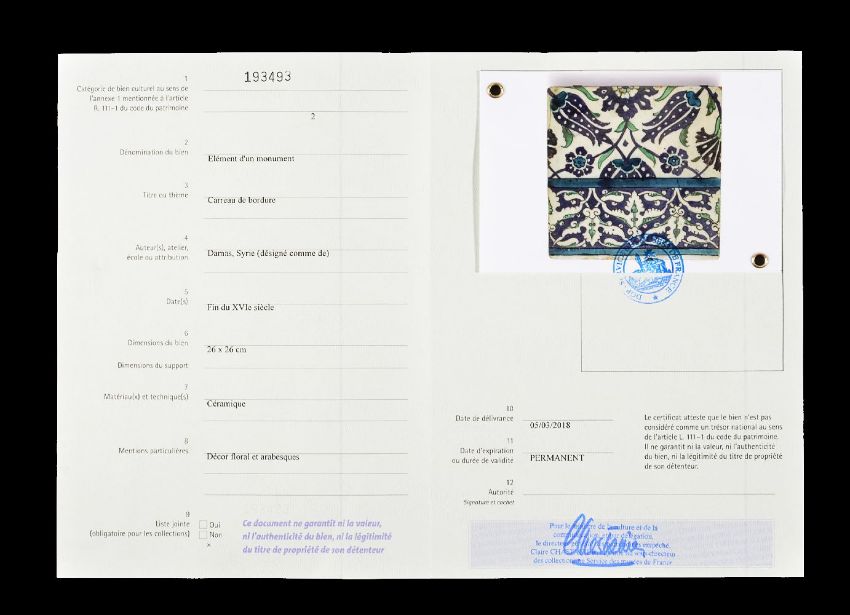 To Include a collection of Iznik & Damascus Tiles from the Estate of the Late Sir Howard Hodgkin CH CBE