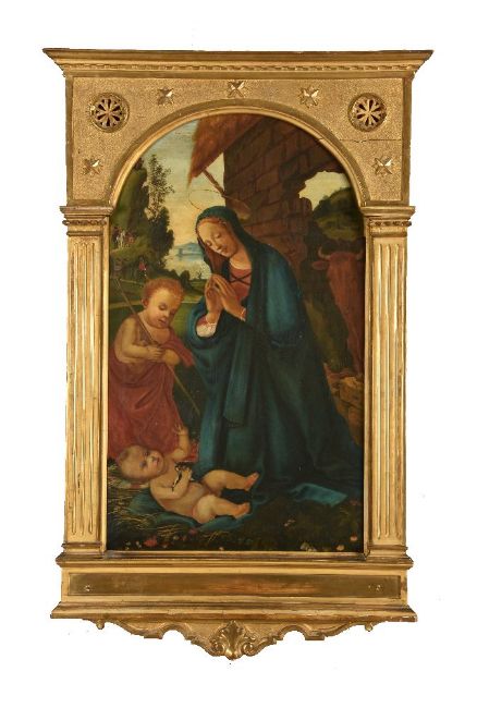 Italian School (19th century) Portrait of the Virgin Mary, Christ and St. John the Baptist Oil on canvas 103 x 61.5cm (40½ x 24 in.)