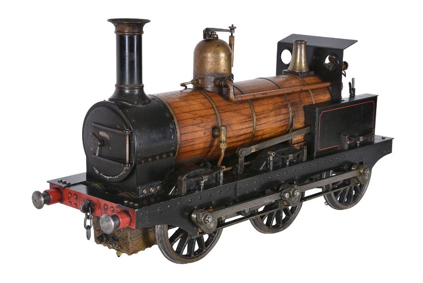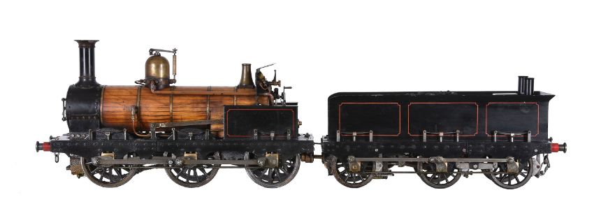 A well-engineered 5 inch gauge model of a Great Northern Railway 0-6-0 tender locomotive ‘Sturrock’, built by Mr J J Wilks of Surrey to the circa 1865/67 design. The silver soldered copper boiler with fittings including steam pressure gauge, water sight-glass, regulator, direction control quadrant with operating lever, whistle control, drop down fire-box door, Salter’s-type safety valve, and two clacks. The chassis having twin inside cylinders with Stephenson’s valve gear, ratchet oiler system. The boiler lagged with simulated wooden planking having brass boiler bands. A six-wheel tender with unusual and rare ‘twin-simple’ piston driven cylinders fitted to the underside of the tender. Tender brakes and slip eccentric, The model finished in Great Northern Railway black lined livery with polished bright-work. Length 122cm. Cab width 19cm.Boiler History: Boiler Identity Number JW10. Southern Federation of Model Engineering Societies Boiler Test Records. Hydraulic test 120psi. Expired 15th of March 2019. Steam test 80 psi Expired the 23rd of September 1017.BOILER HISTORY DISCLAIMER Please Note: All boiler history records and references made in this catalogue are made for guidance only and the auctioneers are not able to convey any guarantees or warranties as to the safety of the boilers or their present condition.