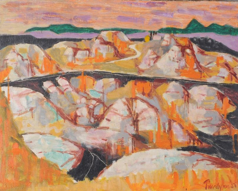 Julian Trevelyan (British 1910-1988) Soil erosion Oil on canvas Signed and dated '56 lower right 41 x 51cm (16 x 20 in.) Provenance: The collection of the late Professor Michael Jaffé, Clifton Maybank