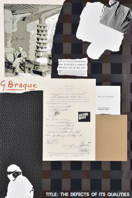 R.B. Kitaj (American 1932-2007) The Defects of It's Qualities Screenprint and collage, 1967 Signed in pencil and inscribed proof (aside from the edition of 70) Sheet: 90 x 61cm (35¼ x 24 in.) Unframed
