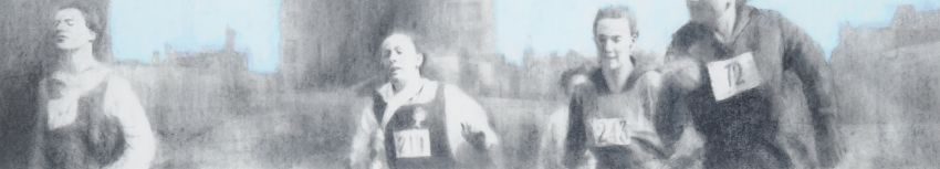 Mark I’Anson (Scottish b. 1978) Race 2 Acrylic and pencil on board 24.5 x 139cm (9½ x 54½ in.) Provenance: The Open Eye Gallery, Edinburgh