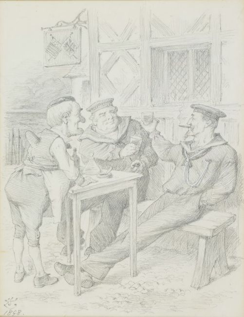Sir John Tenniel (British 1820-1914) Doth not a meeting like this make amends Pencil Signed with monogram and dated 1898 lower left, inscribed to mount with title and Punch reference Nov. 26. 1898 20.3 x 15.5cm (7 x 6 in.)