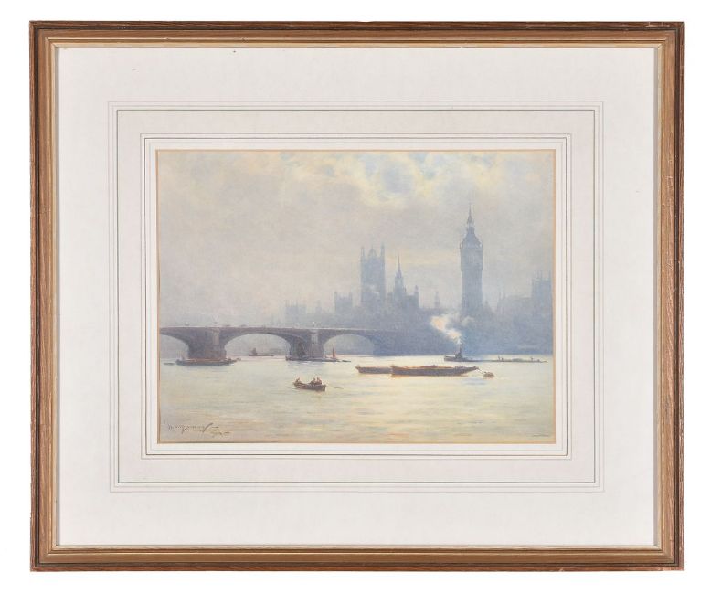 λ† William Alister Macdonald (British 1861-1948) The Houses of Parliament in the early morning mist; London Bridge Watercolour Both signed and dated 94 lower left Each 24 x 33cm (9¼ x 12 in.) (2) Provenance: Sale, Christie's London, 3 July 2007, Lot 736 λ indicates that this lot may be subject to Droit de Suite royalty charges. Please see our Terms & Conditions for more information. † indicates that VAT is payable by the purchaser at the standard rate of 20% on the hammer price as well as being charged on the buyers’ premium. Please see our Terms & Conditions for more information.