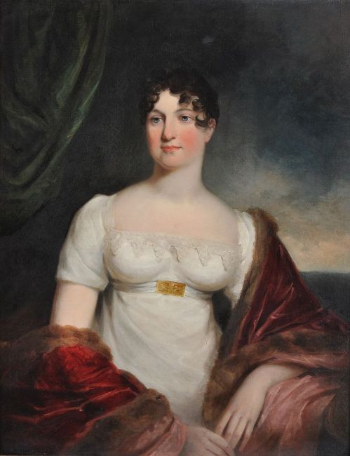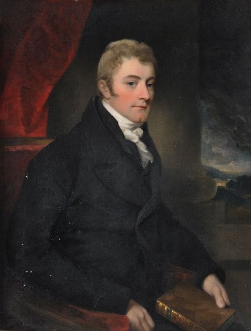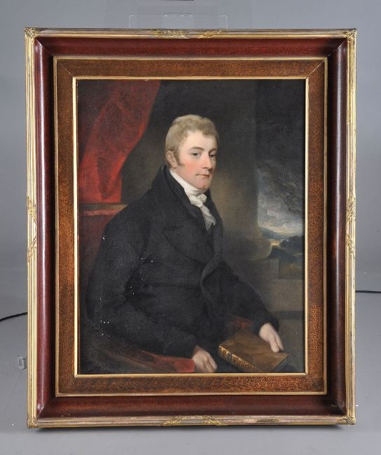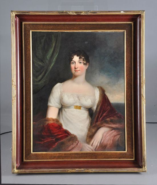 Circle of George Henry Harlow (British 1787-1819) Portrait of a lady wearing a red shawl; Portrait of a gentleman holding a book Oil on canvas, a pair Each 91 x 72cm (35¾ x 28¼ in.) (2) Provenance: Kirtlington Park, Oxfordshire