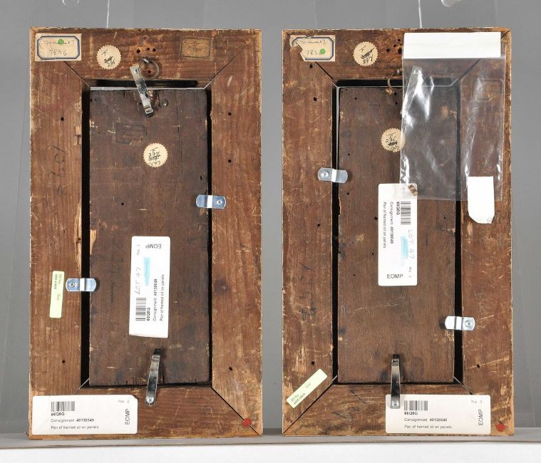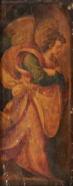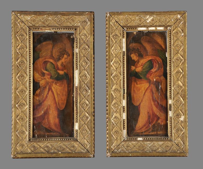 Italian School (18th century) A pair of winged angels Oil on panel Each 11.5 x 30cm (4½ x 11¾ in.) (2) Provenance: Lady Henry Somerset (1851-1921) Reigate Priory, Surrey Thence by descent to Henry Charles Somers Augustus Somerset (1874-1945) Thence by descent to the present owner