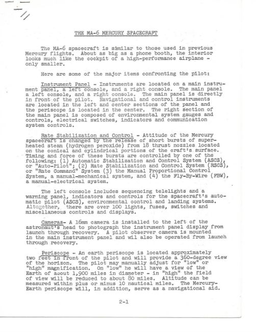 - The MA-6 Mercury Spacecraft. Fact sheet, no date, 6 pages, staple bound.