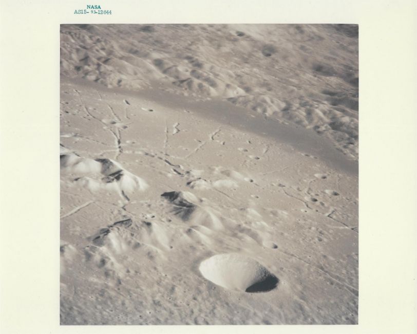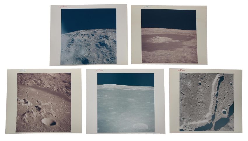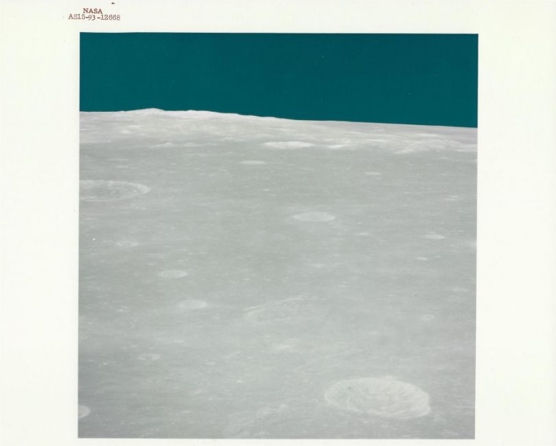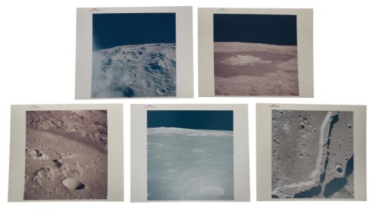 David Scott, Alfred Worden or James IrwinGroup of five lunar views taken by Hasselblad camera from orbit, comprising:1) Craters O-Day and Sierpinski (NASA AS15-91-12378 )2) Crater Tsiolkovsky (NASA AS15-91-12383)3) Crater Humboldt (NASA AS15-91-12644)4) Craters Jansen B, Ross, D (NASA AS15-91-12668) 5) Schroter's Valley (revolution 69) (NASA 15-97-13257)3-4 August 1971Vintage chromogenic prints on fibre-based paper, 25.5 x 20.5 cm (10 x 8 in), each RED OR BLUE NUMBERED in top margin, with A KODAK PAPER watermark on verso  Condition Report: Very goodCondition Report Disclaimer