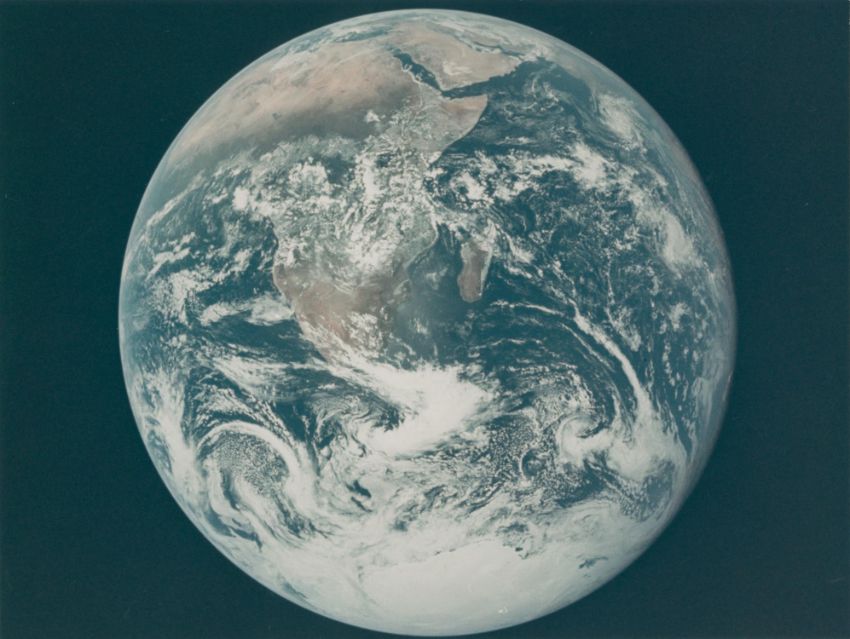 Harrison Schmitt, Eugene Cernan or Ronald EvansThe "Blue Marble", the first photograph of the full Earth seen by human eyes7 December 1972Vintage chromogenic print on fibre-based Kodak paper, 18 x 24 cm (9½ x 7 in), [AS17-148-22727], with A KODAK PAPER watermarks on the verso, (NASA Manned Spacecraft Center)Footnotes: This view of Earth was seen by the Apollo 17 crew as they travelled toward the Moon on their NASA lunar landing mission. This outstanding trans-lunar coast photograph extends from the Mediterranean Sea area to the Antarctica south polar ice cap. This is the first time the Apollo trajectory made it possible to photograph the south polar ice cap. Note the heavy cloud cover in the Southern Hemisphere. Almost the entire coastline of Africa is clearly visible. The Arabian Peninsula can be seen at the northeastern edge of Africa. The large island off the coast of Africa is the Malagasy Republic. The Asian mainland is on the horizon toward the northeast.https://spaceflight.nasa.gov/gallery/images/apollo/apollo17/html/as17-148-22727.htmlCondition Report: Very goodCondition Report Disclaimer