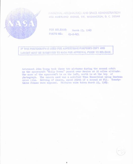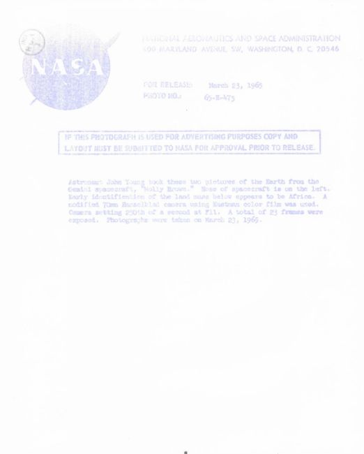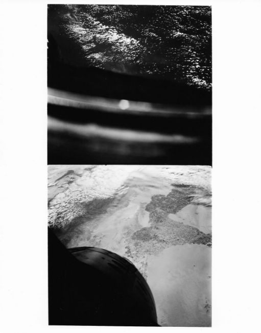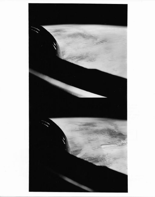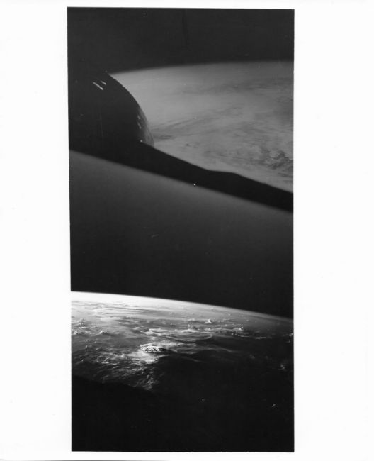 John Young or Gus Grissom A group of four double Earth views taken from the Gemini 3 spacecraft with an adjusted Hasselblad camera from the Gemini spacecraft23 March 1965Vintage gelatin silver prints on fibre-based paper, 20.5 x 25.3 cm (8 x 10 in), all RCA stamped on verso, two with NASA HQ captions, photo nos.: 65-H-471 and 65-H-475Condition Report: Very few minor handling dents otherwise very good.Condition Report Disclaimer