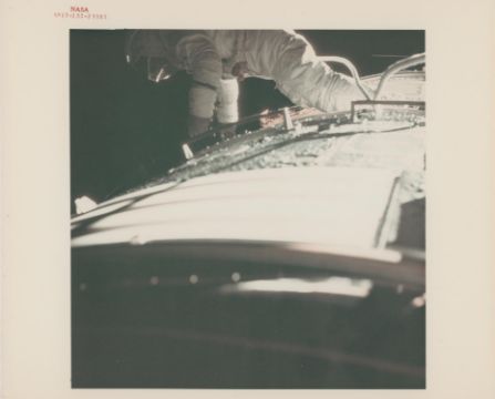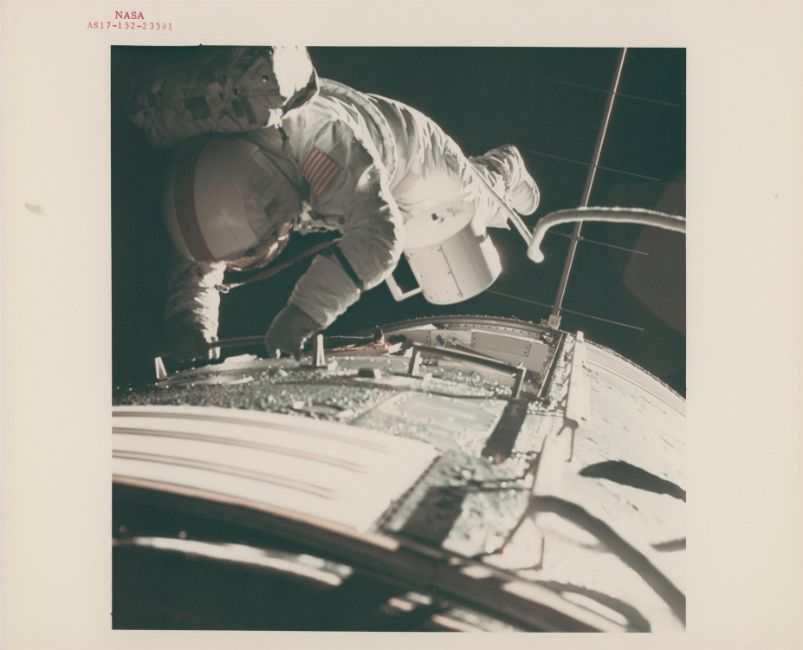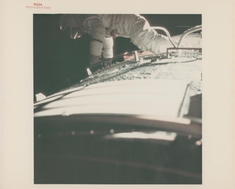 Harrison SchmittTwo images of the deep space spacewalk of Ronald Evans during the transearth EVA - the last EVA of the Apollo program17 December 1972Two vintage chromogenic prints on fibre-based Kodak paper, each 25.4 x 20.3 cm (10 x 8 in), both RED NUMBERED NASA AS17-152-23383 and NASA AS17-152-23391, with A KODAK PAPER watermarks on the versos (NASA Manned Spacecraft Center)Footnotes:Evans' task was to recover film cassettes and conduct an inspection of the spacecraft. The spacewalk took over an hour while the spacecraft was approximately 180,000 miles from Earth. Evans holds the record for the longest time spent in lunar orbit - six days, three hours and 48 minutes.