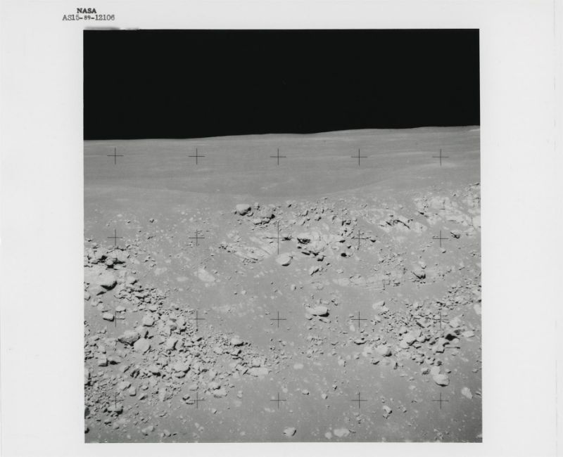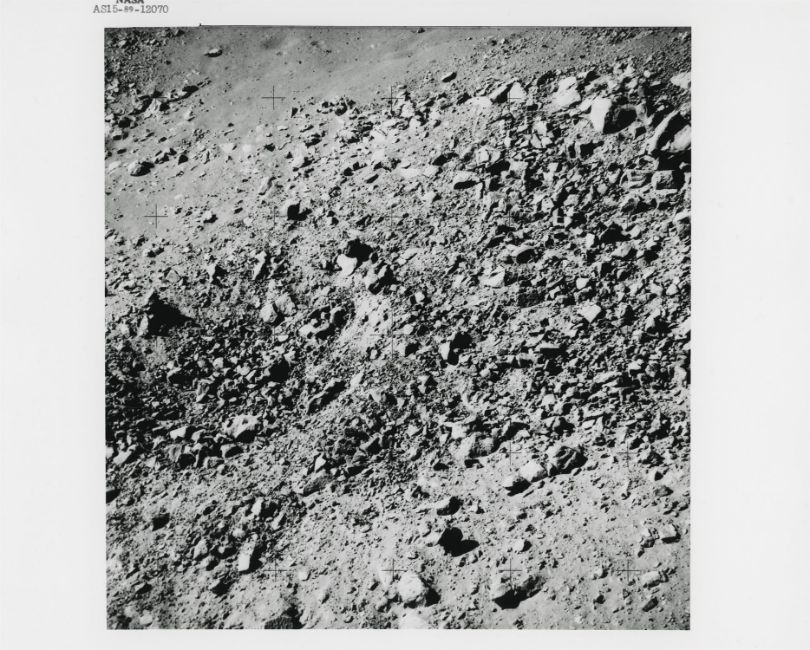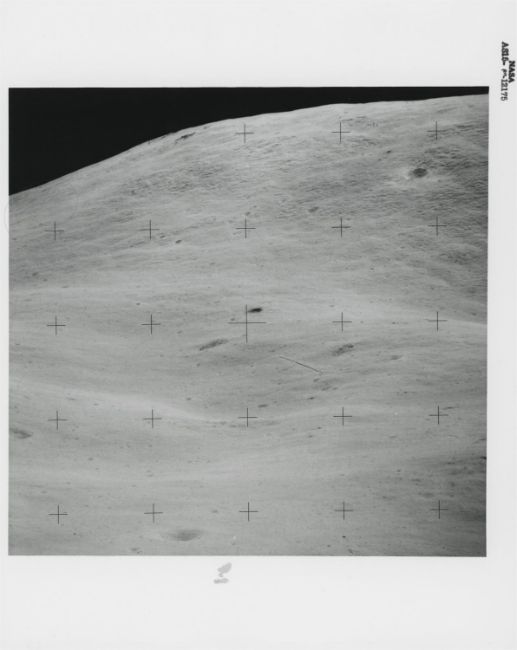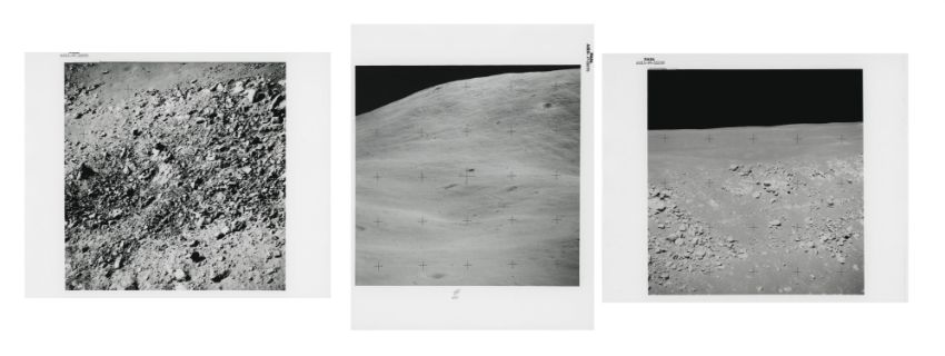 David ScottTelephotographs of distant moonscapes, viewed from station 9A and from the landing site2 August 1971Three vintage gelatin silver prints on fibre-based paper, each 25.4 x 20.3 cm (10 x 8 in), BLACK NUMBERED in top margins: NASA AS15-89-12070, NASA AS15-89-12106 and AS15-89-12175 (NASA/Manned Spacecraft Center)Footnotes: Apollo 15 was the first mission equipped with a 500-mm lens Hasselblad to document the areas the crew could not explore. From station 9A on the edge of Hadley Rille, David Scott used the telephoto lens to photograph interesting moonscapes. He captured a debris-filled crater on the opposite wall of the lunar canyon (first photograph) and the lip of the canyon with the mare surface beyond (second photograph). Back at the landing site, he used the telephoto lens to photograph a dark crater on Mount Hadley Delta (third photograph). 'We had to push very hard to get a 500-mm lens. There was a lot of scepticism on whether it would be useful at all. And we were always pleased that it was useful. And yeah, we got some great pictures, because it was pretty easy. You point the dude and you've got a great scene out there to take pictures of.' David Scott