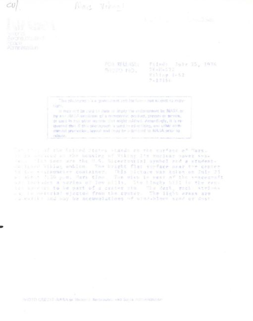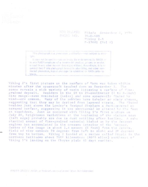 Automatic cameras onboard Viking 1 and 2 robotic probesViews of the Martian surface, including the first view of Mars taken by a lander probe (NASA photo 76-H-688) on 3 September 1976Nineteen gelatin silver prints on fibre-based paper, 25.3 x 20.4 cm (10 x 8 in), all with NASA Headquarters logo printed in upper margin and with detailed NASA captions on the verso