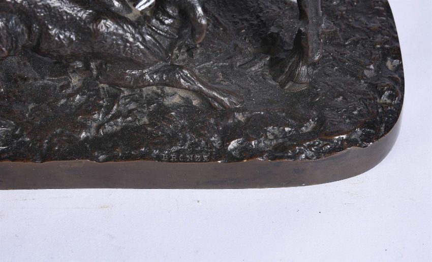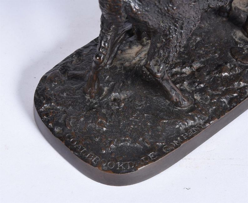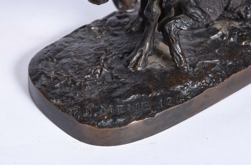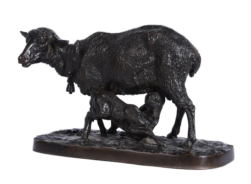 Pierre-Jules Mêne (1810-1879), a bronze animalier group of a ewe and her suckling lamb, inscribed to the base P J Mene 1845, and impressed COALBROOKDALE COMPANY, BRONZE, 14.5cm high, 23cm long, 10cm wide Provenance: Berwick House, ShropshireCondition Report: No serious damage or losses noted. As catalogued, the model is a last quarter 19th century cast Please refer to additional images for further visual referenceCondition Report Disclaimer