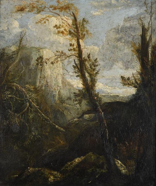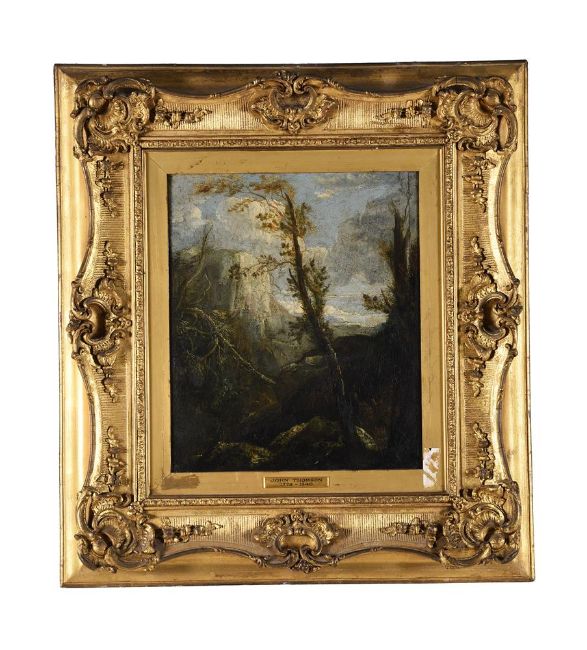 Attributed to John Thomson of Duddingstone (Scottish 1778-1840)Sublime landscapeOil on panel36 x 30cm (14 x 11¾ in.)Provenance:Berwick House, Shropshire