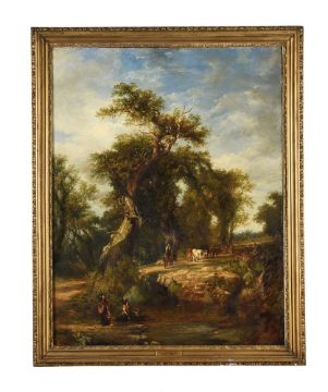 Frederick Henry Henshaw (British 1807-1891)River scene, WorcestershireOil on canvasTitled, signed and dated 1849 (to artist's label verso)89.5 x 70cm (35 x 27½ in.)Provenance:Berwick House, Shropshire Condition Report: The canvas has been relined. Scattered bitumen damage throughout but predominantly to the lower half. Abrasions to the framed edges. Craquelure throughout but mainly visible to the sky. UV inspection reveals in-filling to the craquelure and further scattered retouching throughout.Condition Report Disclaimer