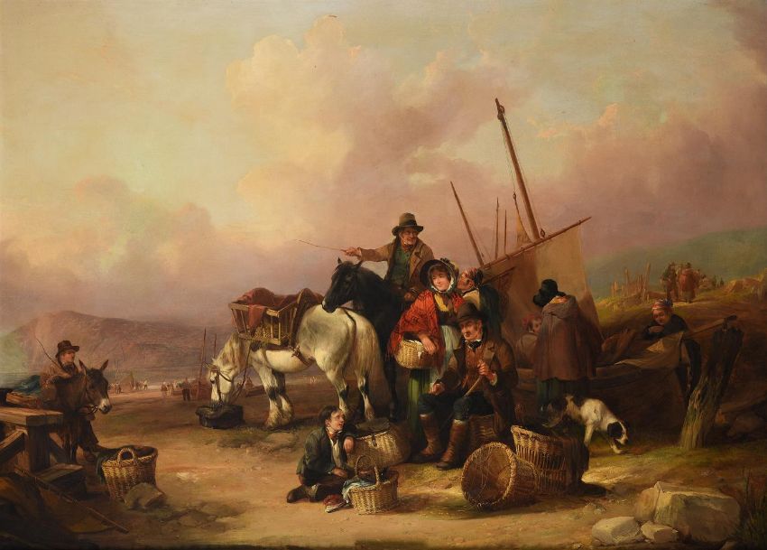 William Shayer Senior (British 1787-1879)Waiting for the herring boatsOil on canvasSigned (lower right)86 x 119cm (33¾ x 46¾ in.)Provenance:Berwick House, Shropshire