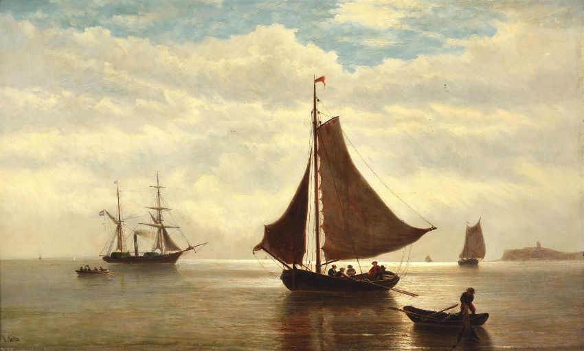 L. Zimmers (19th century)Moonlight becalmed on the ScheldtOil on canvasSigned with initials and numbered I6'8 (lower left) furthered numbered 267 (verso)54.5 x 90cm (21¼ x 35¼ in.)Provenance:Berwick House, Shropshire