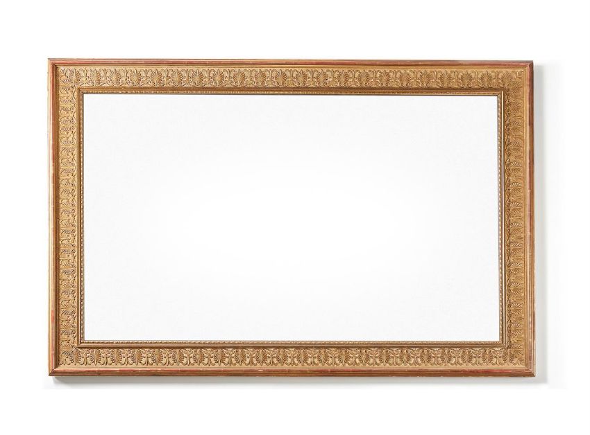 A REGENCY STYLE GILTWOOD PICTURE FRAME WALL MIRRORLATE 19TH/EARLY 20TH CENTURYThe moulded frame with an anthemion decorated border120cm high, 170cm wideProvenance: Supplied by Robert Kime Condition Report: Marks, knocks, scratches and abrasions commensurate with age and use.Old splits and chips.Wear and losses to the gildingSome areas to the sides of the frame with more significant wear and loss to the gilding, most notably to the cornersThe mirror plate is modern and may be a later replacementThe mirror is currently displayed above a fireplace - the condition of the back of the mirror is unable to be determined as a resultPlease refer to additional images for visual reference to condition.Condition Report Disclaimer