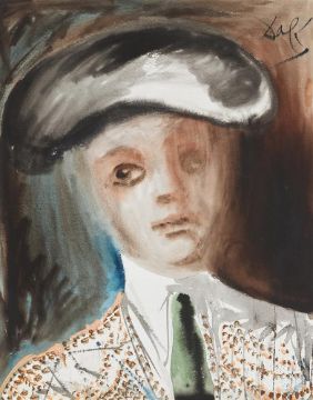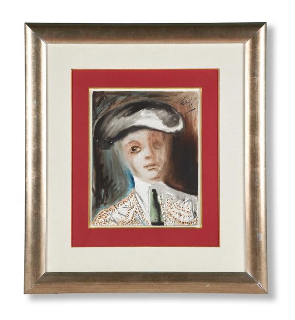 λ SALVADOR DALI (SPANISH 1904-1989)TOREADOR (PORTRAIT OF THE HERO-CARMEN II) Gouache, watercolour and washSigned (upper right)49.5 x 39cm (19¼ x 15¼ in.)Executed in 1968.Provenance:Private Collection, New YorkSale, Sotheby's, New York, 6th October 1989, lot 199Sale, Christie's, London, 9th February 2006, lot 668Purchased at the above sale by the present ownerThis work is recorded in the Robert and Nicolas Descharnes Archives under the number D0835_1968.From Goya to Picasso and Dali, the spectacle and tradition of bull fighting has permeated the work of successive generations of Spanish artists. The image of the Toreador has come to epitomise the very essence of a hero - honourable, dignified, formidable yet graceful. The choreographed dance between bull and bullfighter is an intimate series of carefully rehearsed and practiced movements designed ultimately to show off the skill and expertise of the bull fighter.Dali based his own depictions of the La Tauromquia, on Picasso's earlier famous series of etchings. Dating from 1966, Dali's images incorporate the use of scythes and crosses as a clear indication that the shadow of death hangs over this theatrical spectacle.In contrast the present work is a more intimate portrayal of the bull fighter, far removed from the frenetic activity of the bull fight, the hero is depicted in a moment of reflection.Condition Report: Executed on cream wove paper. The work is hinged to the mount in the upper left and right corners on the verso. The lower edge of the sheet is deckled. There are minor networks of hairline drying cracks to the thickest pigment in the peach areas, inherent to the medium used. This work is in overall very good condition.Condition Report Disclaimer