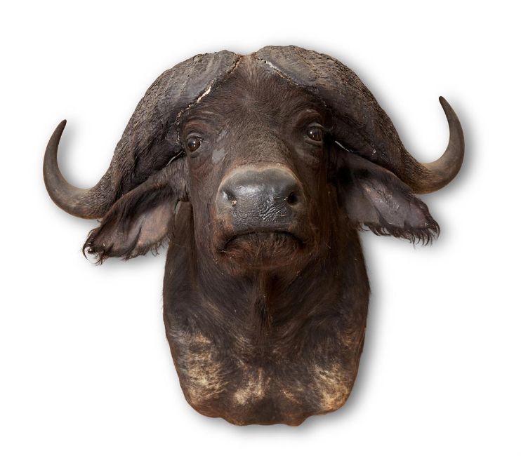 Y  A PRESERVED CAPE BUFFALO, SYNCERUS CAFFERHead and shoulder mount, modelled looking forwardApproximately 85cm highCondition Report: Bald patches to base of neck. Shrinkage and splits to horn joints.Condition Report Disclaimer