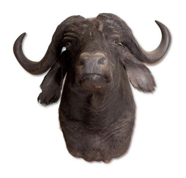 Y  A PRESERVED CAPE BUFFALO, SYNCERUS CAFFERHead and shoulder mount, modelled looking forwardApproximately 85cm highCondition Report: Tip of buffalo's right ear with signs of damage. Some small bald patches to the base of the neck.Condition Report Disclaimer