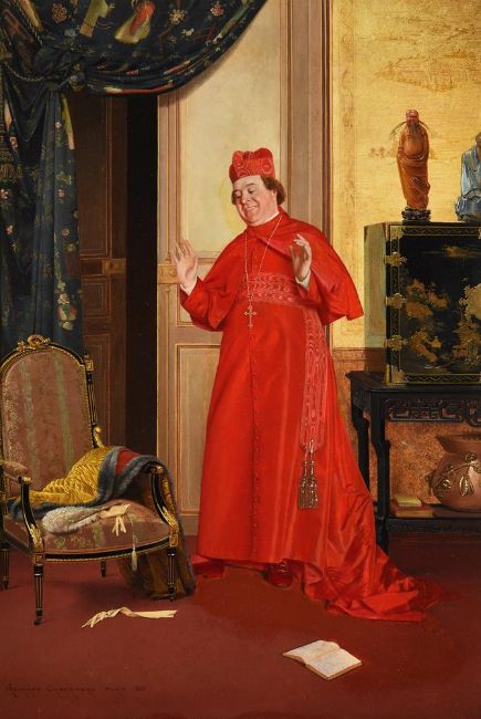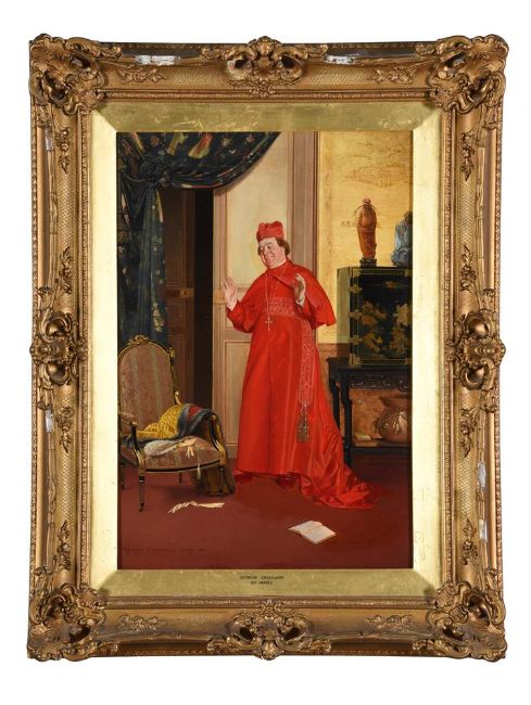 GEORGES CROEGAERT (BELIGIAN 1848-1923)INTERIOR WITH CARDINALOil on panelSigned and dated Paris 1888 (lower left)46 x 31cm (18 x 12 in.)
