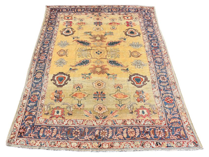A MAHAL CARPETapproximately 363 x 252cmCondition Report: Some minor wear but carpet is in generally good order overall. Fringing is trimmed short at both end and has the expected fraying. Binding to longest edges are generally tidy with just some minor wear and fraying. The abrash/variation in the colour of the carpet is within its manufacture and is to simulate greater age. Please refer to additional images for visual reference to condition.  Condition Report Disclaimer