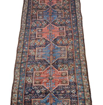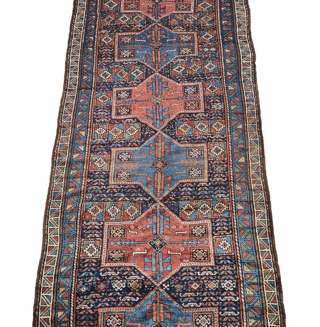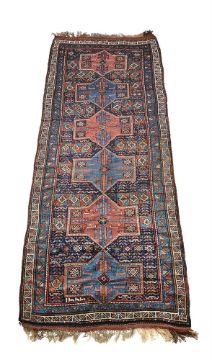 A KAZAK GALLERY CARPETapproximately 414 x 160cm Condition Report: Some wear but maintains good pile overall. Fringing with some wear, fraying and a few minor losses. Binding of longest edges with some minor wear and undulation. Please refer to additional images for visual reference to condition. Condition Report Disclaimer