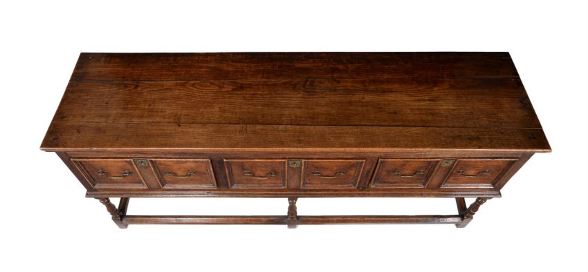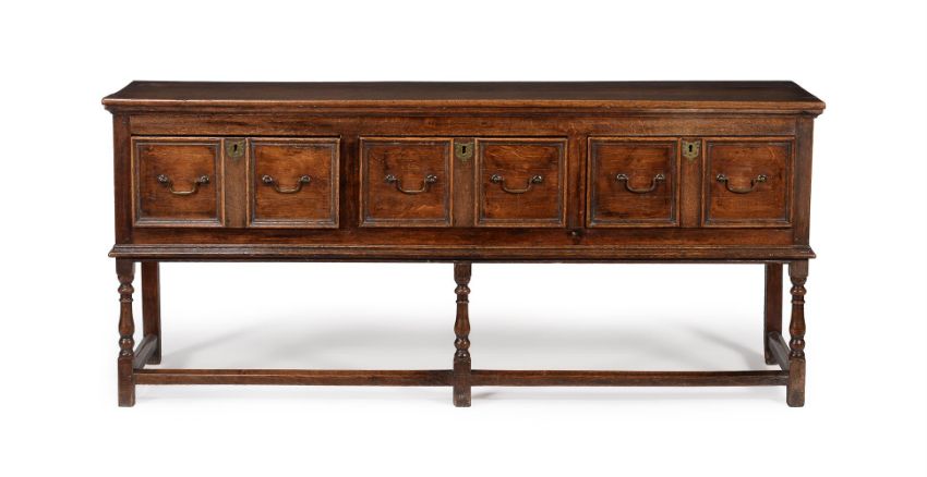 A CHARLES II OAK DRESSER BASECIRCA 168079cm high, 177cm wide, 46cm deepFor a related dresser base of the period with similar drawer mouldings see, Christie's, London, Interior's - Masters & Makers, 24th March 2009, Lot 469 (£8,125).