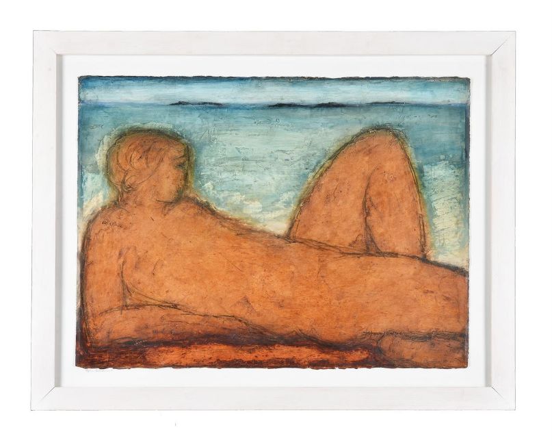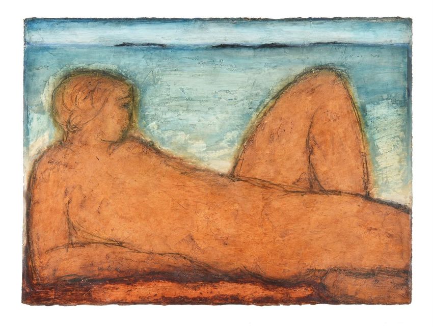 λ John Emanuel (British b.1930)Figure Against a Skyline, Western Isles ScillyOil and charcoal on paper56 x 75cm (22 x 29½ in.)Provenance:Candover Gallery, Hampshire, 1997
