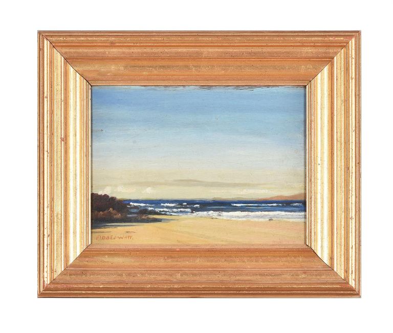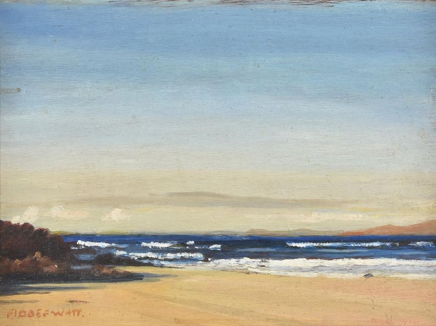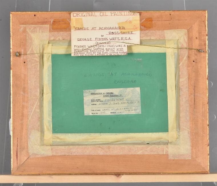 λ George Fiddes Watt (Scottish 1873-1960)Sands at Achnahaird, Ros-shireOil on board Signed (lower left) and further signed (lower right); titled (verso)23.5 x 31cm (9¼ x 12 in.)Exhibited:London, Kensington and Chelsea Artists' Exhibition 19, no. 1