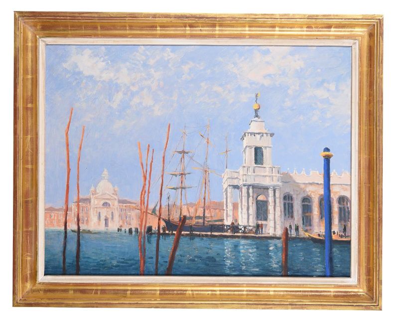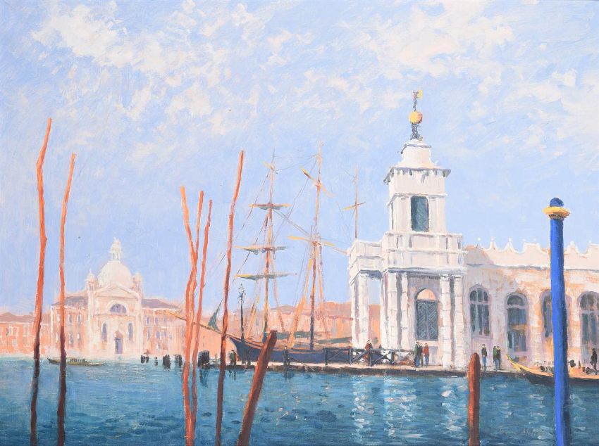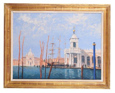 λ John Miller (British 1931-2002)Gondola PolesOil on canvasSigned (lower right); titled (verso)56 x 76cm (22 x 29¾ in.)Provenance:David Messum, London, stock no. 59