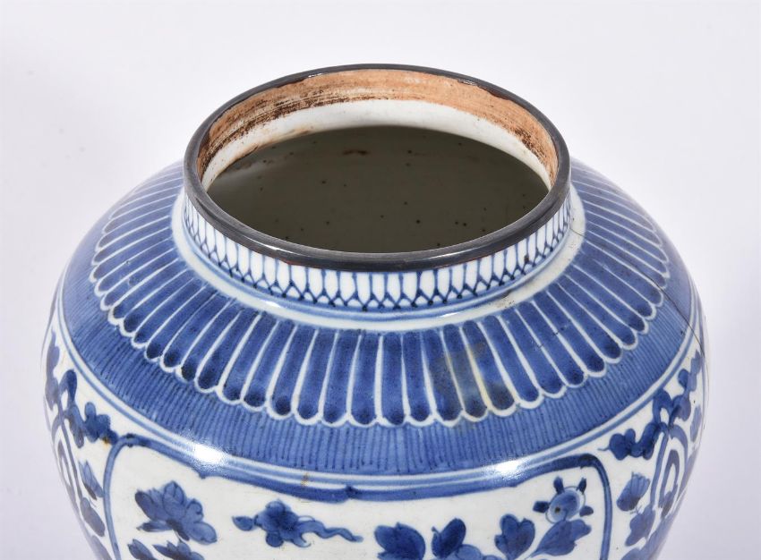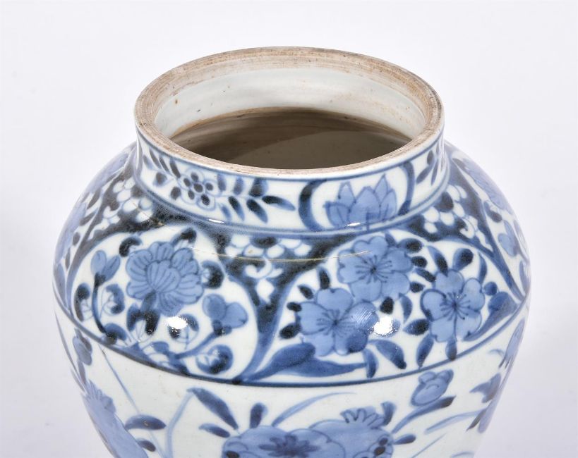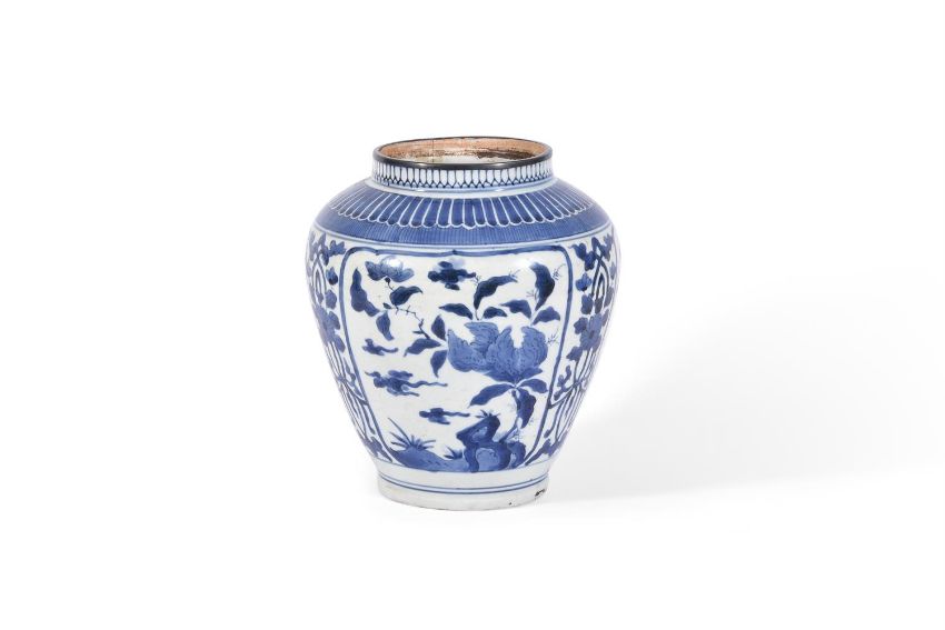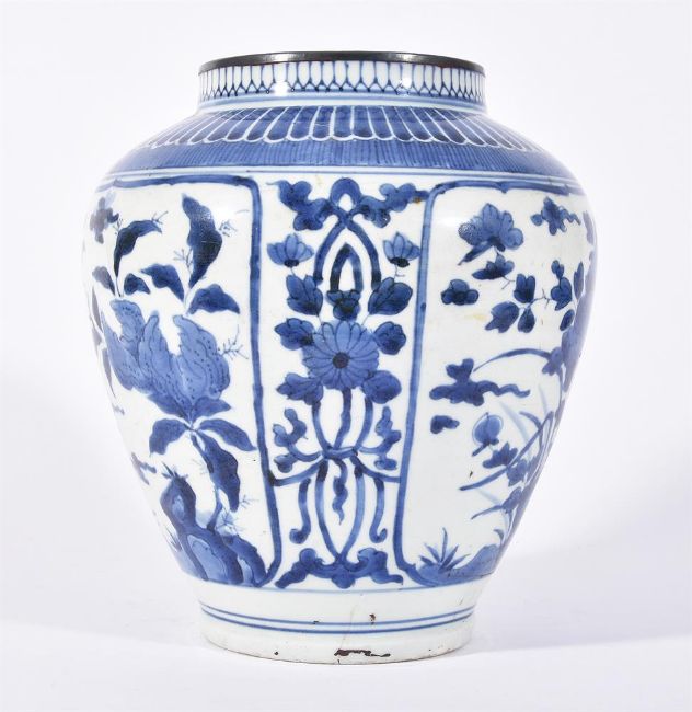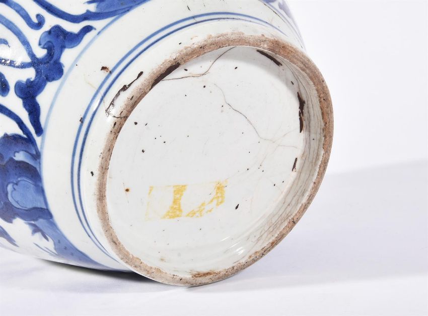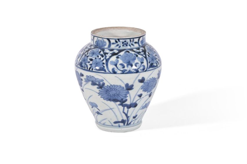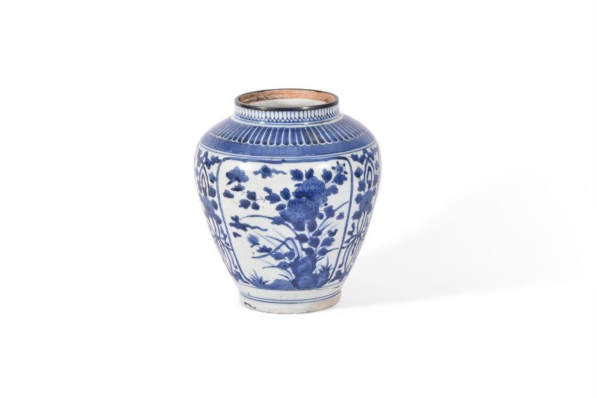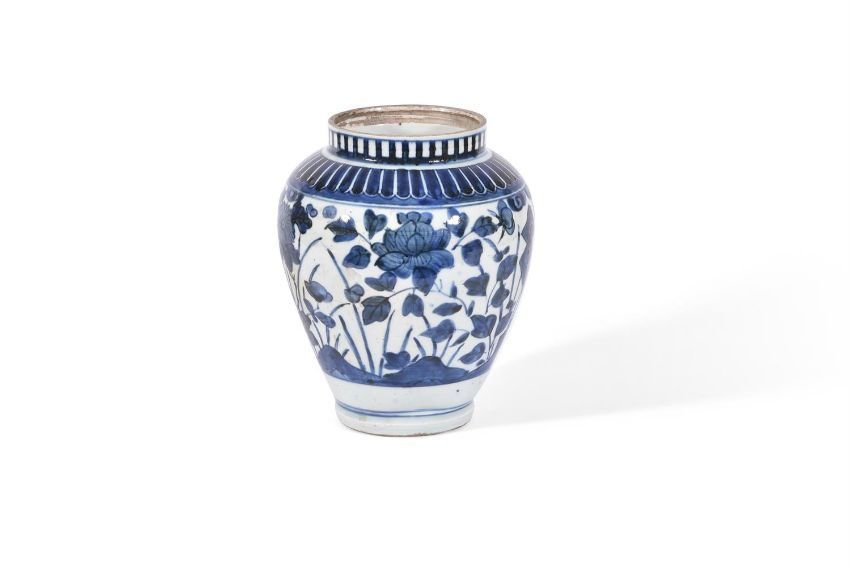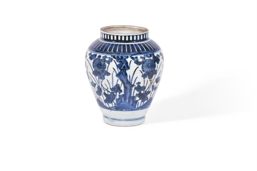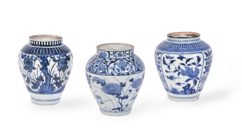 THREE ARITA BLUE AND WHITE VASES CIRCA 1700 Variously decorated with flowers and foliagebetween 24cm and 16.5cm highCondition Report: Largest vase with 25cm long hair crack extending from base to rim. Another hair crack running horizontally towards foot rim measuring 21cm long. And further cracks through base. Now with metal rim. Areas of crazing to glaze. The 22cm high vase generally good other than surface scratches and wear commensurate with age. The smallest vase generally good other than 16cm long firing crack to shoulder. Condition Report Disclaimer