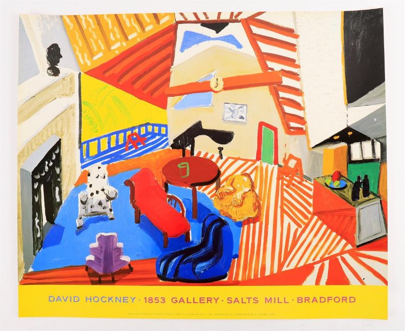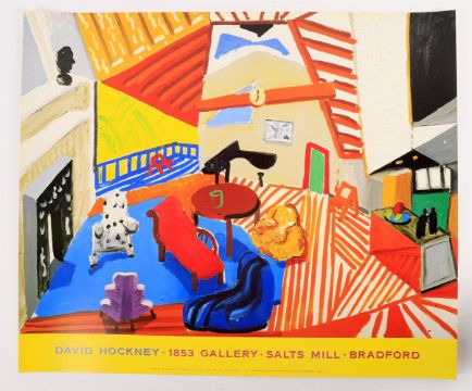 After David Hockney, Montcalm Interior at Seven O'Clock, 1853 Gallery, Exhibition Poster, David Hockney exhibition at 1853 Gallery, Salt Mill, Bradford, 1988, 70 x 84cm (27½ x 33 in.) Unframed