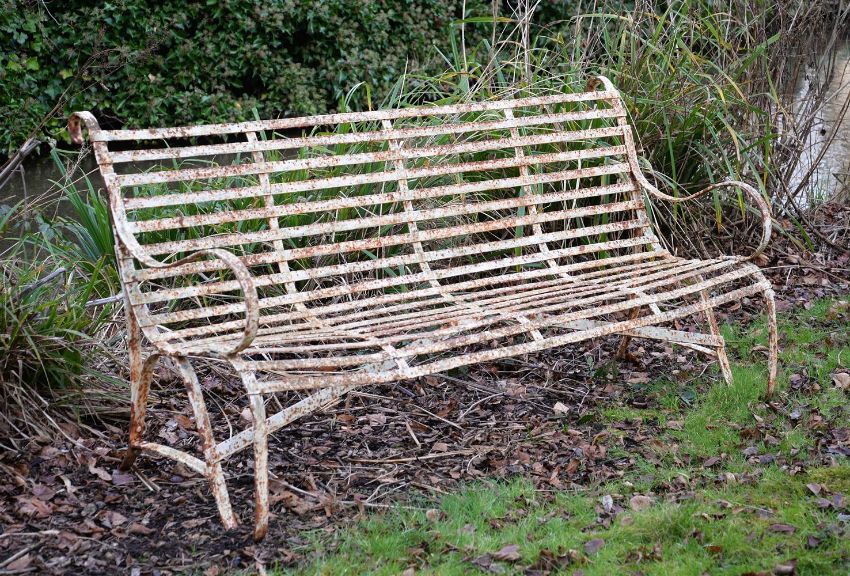 A REGENCY IRON STRAPWORK GARDEN BENCH EARLY 19TH CENTURY 180cm wide, 88cm high, 72cm deep